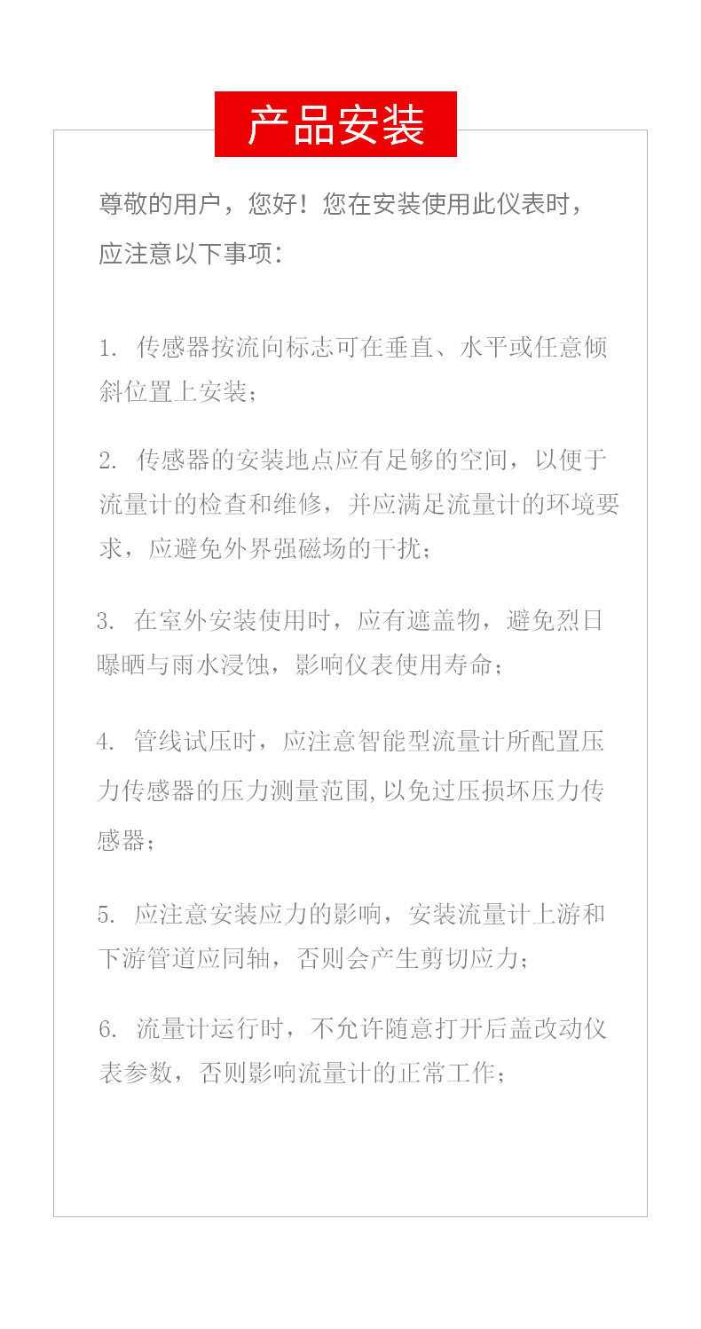 傳感器適用于在工作溫度下粘度小于5×10-6m2/s的介質(zhì),對(duì)于粘度大于5×10-6m2/s的液體,要對(duì)傳感器進(jìn)行實(shí)液標(biāo)定后使用。